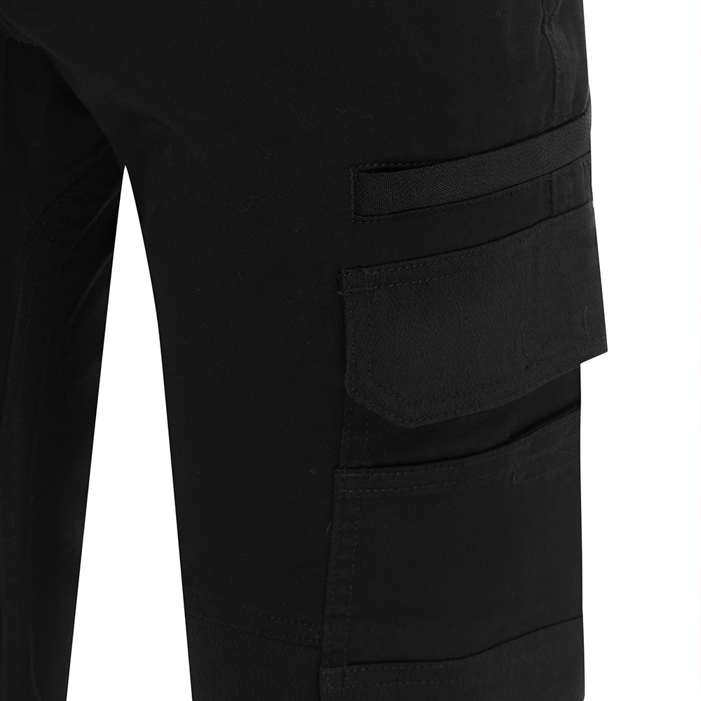 - Zippered thigh pocket and tool pockets at back