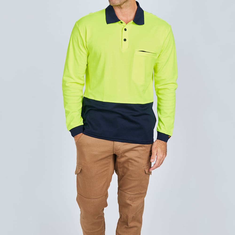 The soft, breathable cotton of this Hi-Vis Cotton Backed Polo Shirt makes it comfortable for all-day wear. The shirt is made in fluorescent Hi-Vis colour, preferred for day visibility in Australia and New Zealand.
